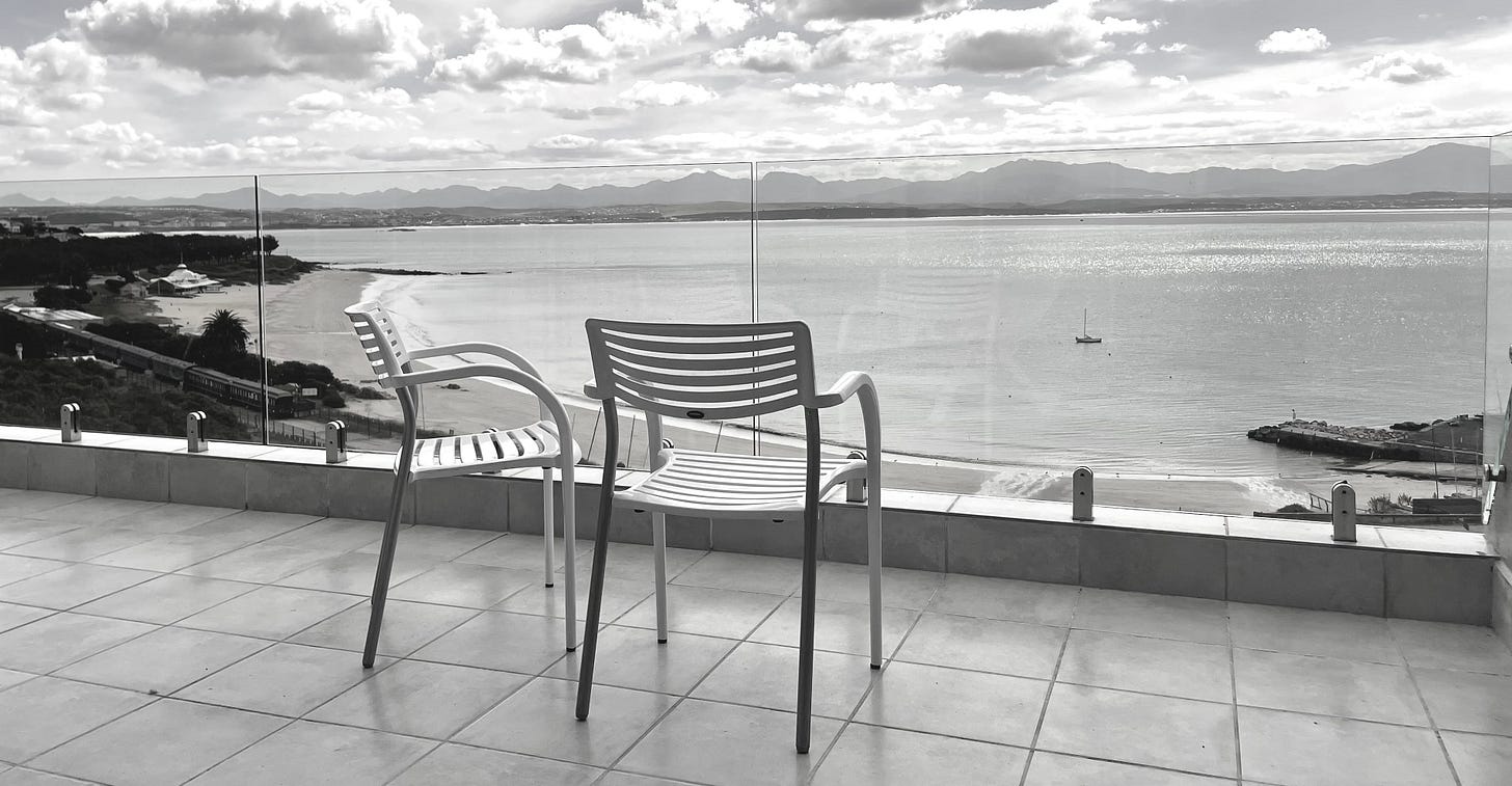 My girlfriend and I are on holiday in a small seaside town called Mossel Bay, somewhere in the middle of South Africa’s Garden Route. I really prefer to use the town’s Afrikaans name, Mosselbaai. I’m not sure why, perhaps because most of the locals and holiday makers seem to be Afrikaans (if they aren’t Germans or Brits). Perhaps because the friend who has kindly let us stay in her apartment is Afrikaans. She is a relatively new friend of mine, but has known my parents since they were younger than I am now; she has very generously allowed us to stay in her family’s holiday home for a week, rent free. My girlfriend and I gawked at the view when we first saw it; massive sliding doors lead out onto a balcony with an extensive ocean and beachfront view. It’s almost sickening, how spoilt we are. The minuscule, labyrinthine parking garage that threatens to dent my car with every turn isn’t even enough to discourage my enthusiasm. As we carried our rucksacks and cooler box up the stairs and into the apartment and began unpacking the milk and the coffee pot, a strange sense dawned on me. I have stayed in the homes of people I know and love. I have stayed in the homes of strangers. I have stayed in apartments and hostels that are home only to weary, backpack laden travellers. This place isn’t quite a home. As we opened doors to uncover bathrooms or cabinets to find mugs and saucepans, I got the sense that this flat is loved, but often empty. In the cupboard that I found my pillow in, there was a big Christmas wreath decorated with silver and gold baubles and big red ribbons stashed, askew, in the top shelf. From where I sit writing, I see a tall silver candlestick and a wooden Christmas ornament, but they sit in a dark corner on top of an empty, unplugged mini-fridge. When we arrived, some things had been put away: towels, bedding. Some things were left just so; there was still soap in the shower, awaiting the return of family or maybe of friends like us. The space feels like it yearns for the messiness of life: for sand strewn from the feet of care free children; for the sweet, sticky scent of sunscreen; for threadbare, sun bleached furniture. But half burnt candles and old, unsettlingly well kept furniture echo a half used home.
